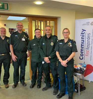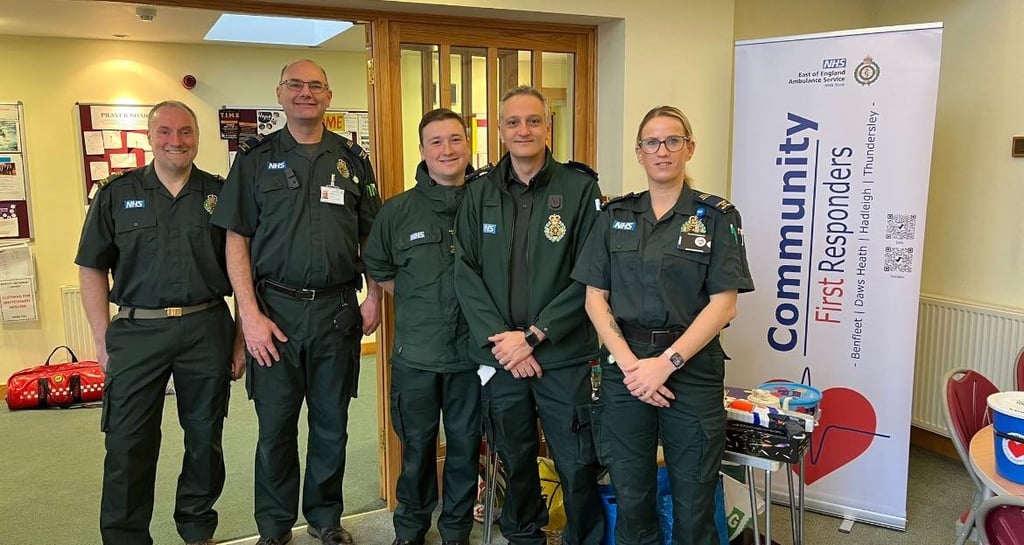 Benfleet Community First Responders (CFR) are a dedicated team of trained volunteers working in partnership with the East of England Ambulance Service. Based in Benfleet, Essex, we respond to life-threatening 999 calls in our local community—often arriving before an ambulance—to provide vital early care and support.